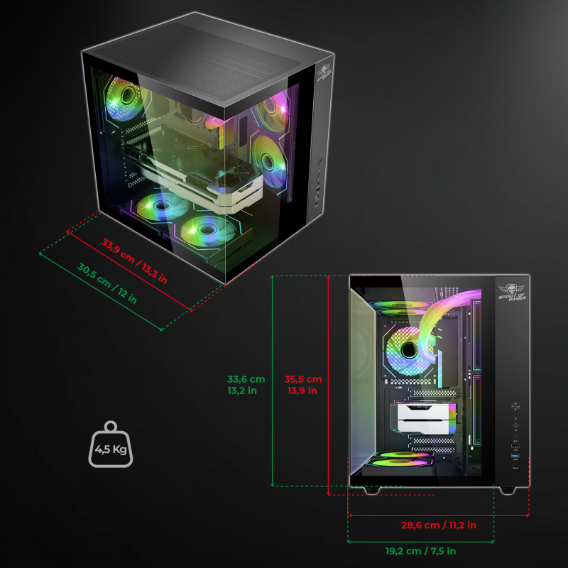 Un design robuste et élégant pensé pour les gamers : Fabriqué à partir d’acier SPCC 0,6 mm, BANDIT GT associe solidité et finition soignée. Sa façade en métal et verre trempé, combinée à une paroi latérale transparente, met en valeur votre configuration ARGB et chaque détail de vos composants. L’ouverture sans outil grâce aux parois clipsables (sauf paroi droite : vis à main) facilite l’entretien et les mises à jour de votre configuration. Compact (33,9 × 28,6 × 35,5 cm) et léger (4,5 kg), BANDIT GT incarne le parfait équilibre entre design, performance et praticité — un châssis prêt à relever tous les défis.