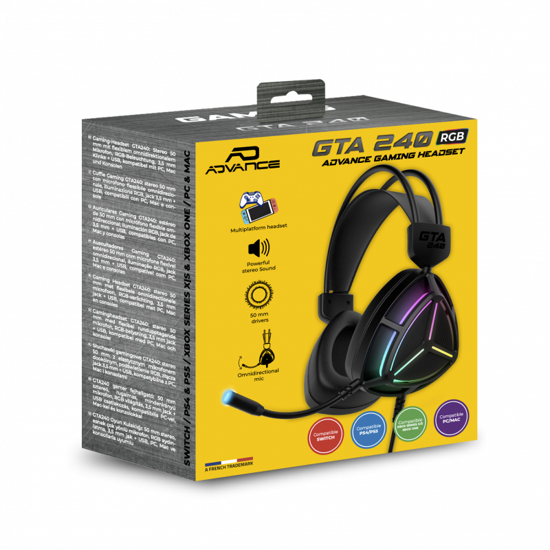 Style RGB, commandes intégrées et connectique hybride : Câble de 2 m avec connecteurs USB pour le rétroéclairage RGB Rainbow + jack 3.5 mm, adaptateur PC inclus, commandes volume ± sur l’oreillette : prêt à briller dans l’arène.