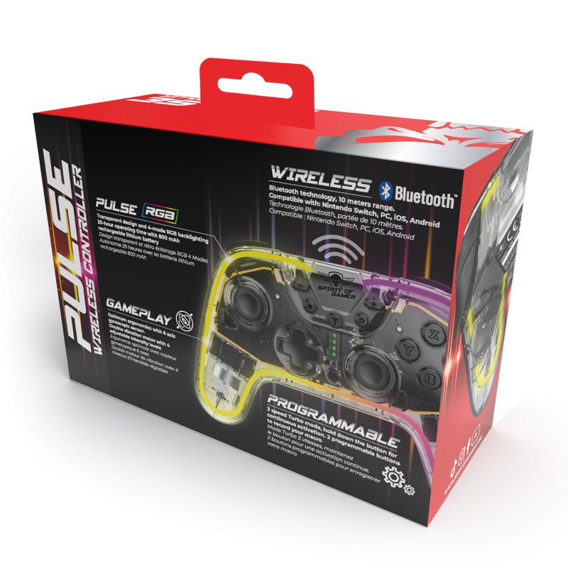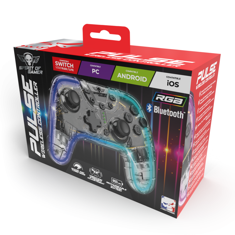Sans fil ! Plongez au cœur d'une expérience de jeu inédite avec notre manette Pulse, équipée de la technologie Bluetooth sans fil offrant une portée opérationnelle étendue jusqu'à 10 mètres. Libérez-vous des câbles et immergez-vous totalement dans l'action, que ce soit sur Switch, PC, iOS ou Android.