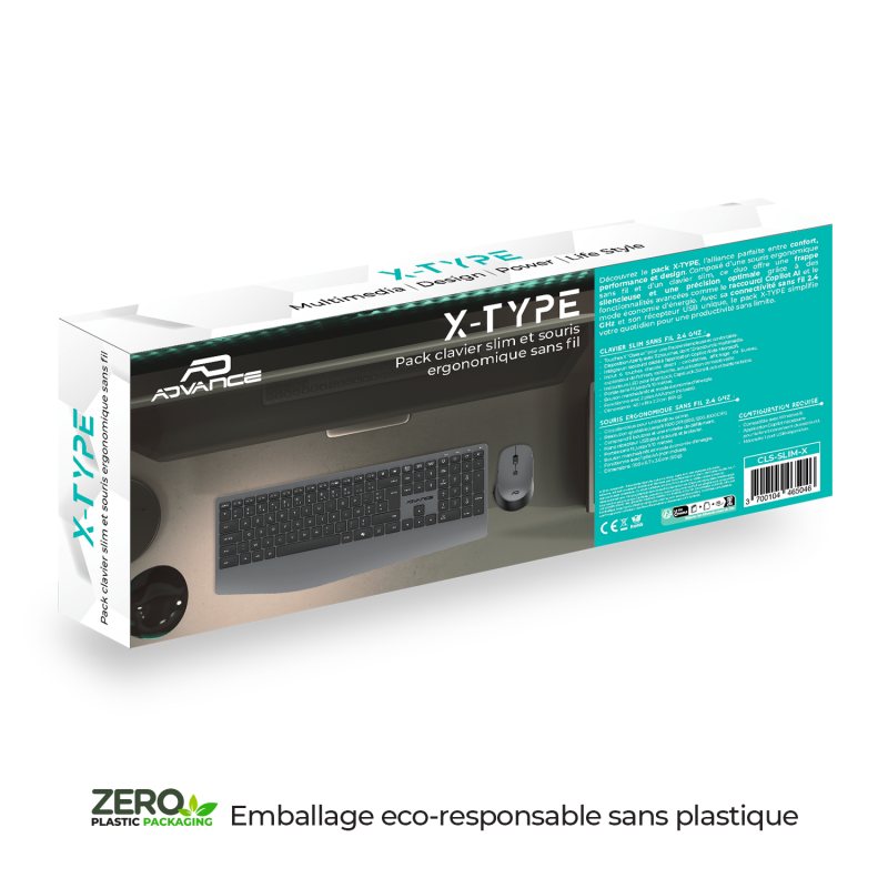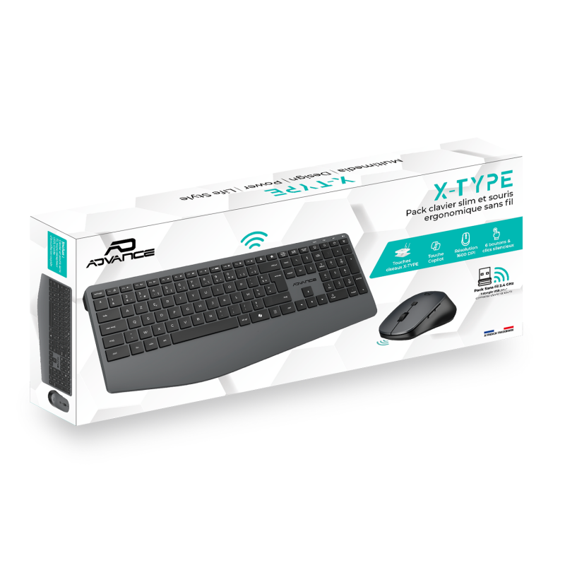 Confort et ergonomie : Le pack X-TYPE a été conçu pour offrir un confort optimal lors de vos longues sessions de travail. Sa souris ergonomique et son clavier slim garantissent une utilisation agréable et sans fatigue, tout en s’adaptant à tous les utilisateurs grâce à leur design ambidextre et compact.