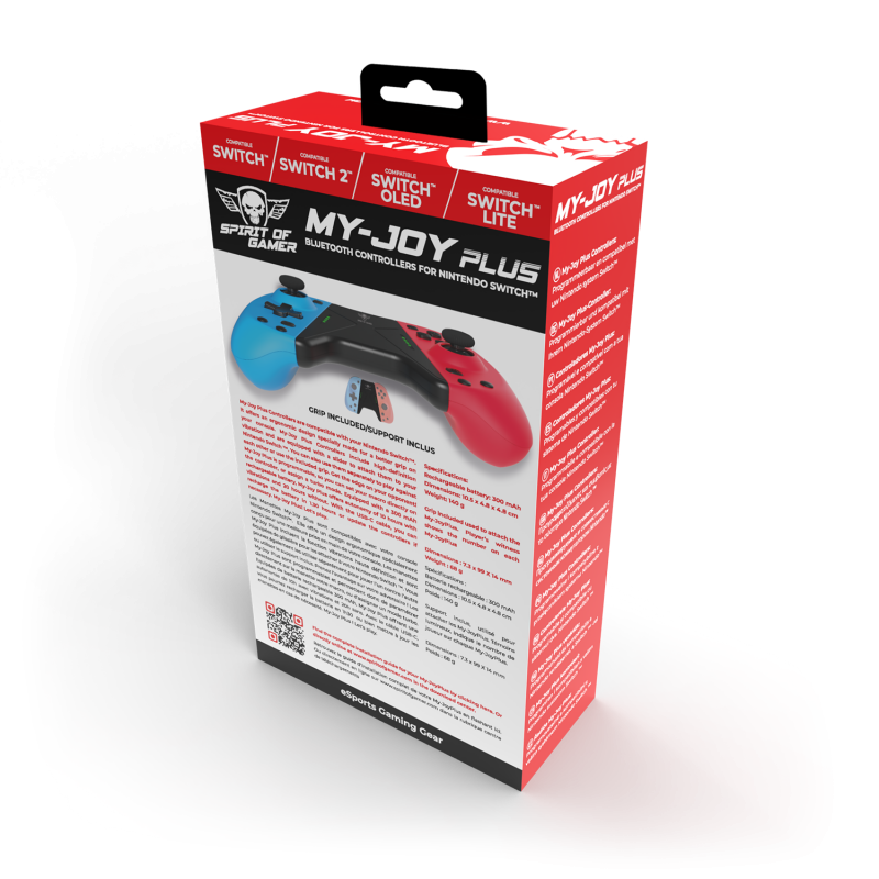 COMPLETE My-Joy Plus controllers include high-definition vibration function and are equipped with slide to attach them to your Nintendo Switch. You can also use them separately to play against each other or use the included support.