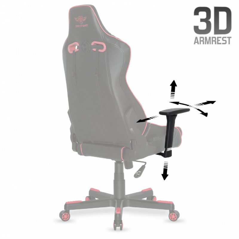 IN THE 3 DIMENSIONS: Well installed in front of your setup, you only have to adjust the 3D armrests: high/low, left/right, front/rear. These settings allow you to adjust your position further to your setup: keyboard, mouse and even if you play with your controller.