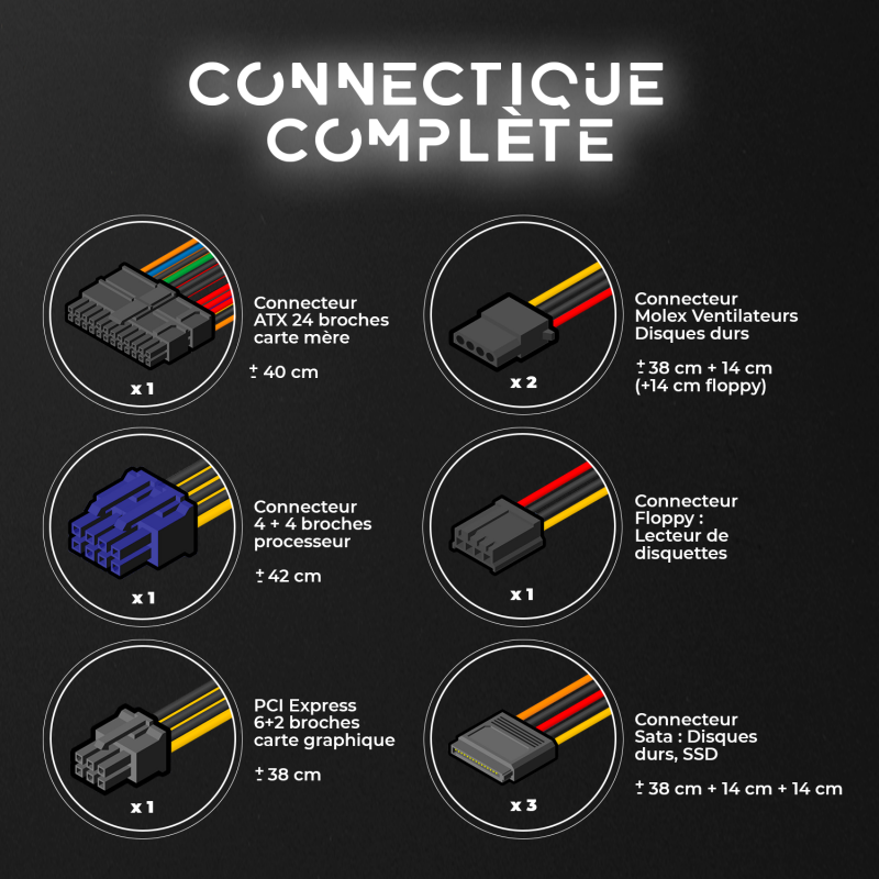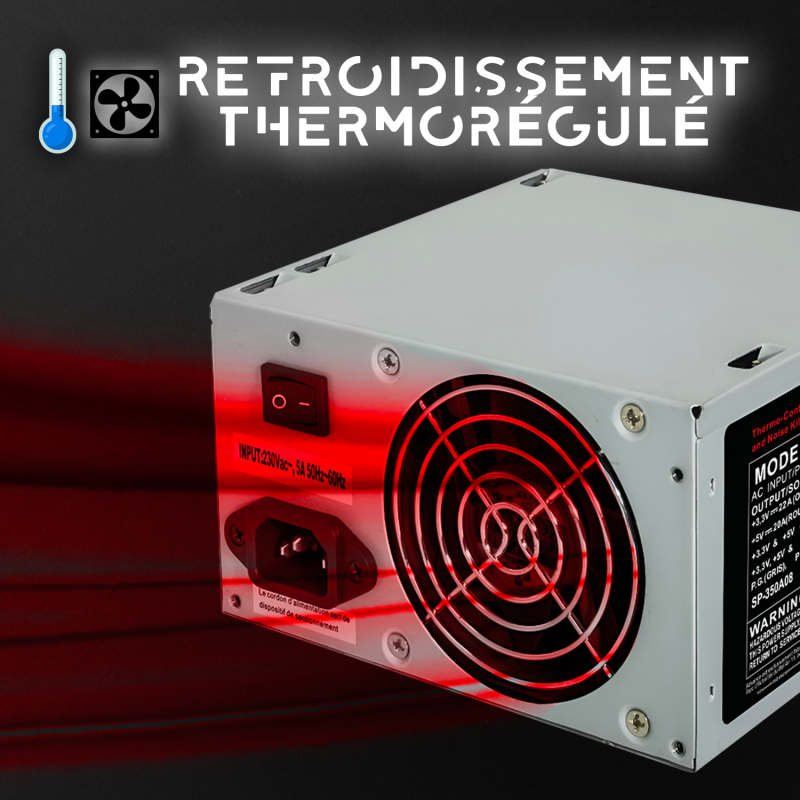 Offrant une connectique très complète, un ventilateur 80 mm , un mono rail d'alimentation 12V et 350 Watts de puissance continue ,elle est idéale pour l'intégration, les configurations bureautique ou multimédia !