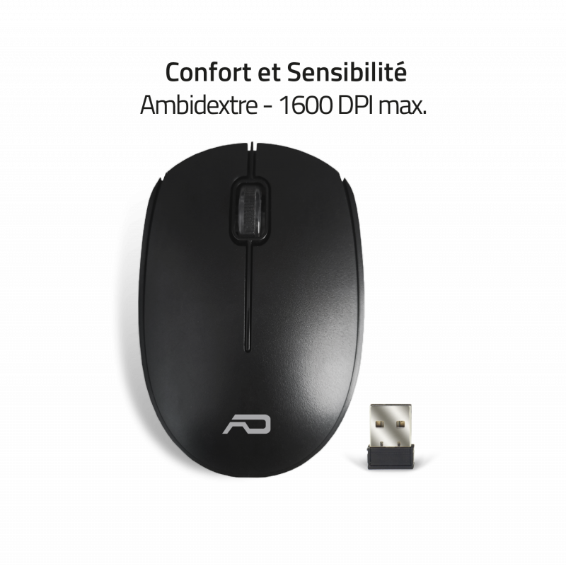 Ambidextrous wireless optical mouse with 3 buttons and a silent scroll wheel