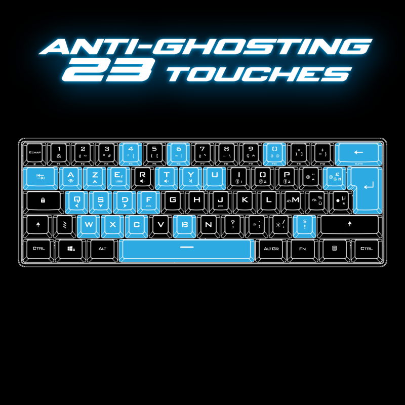ANTI-GHOSTING 23 TOUCHES: Avoid involuntary key combinations, the Anti-Ghosting function allows you to press several keys at the same time without causing misinterpretation! An indispensable function to win.