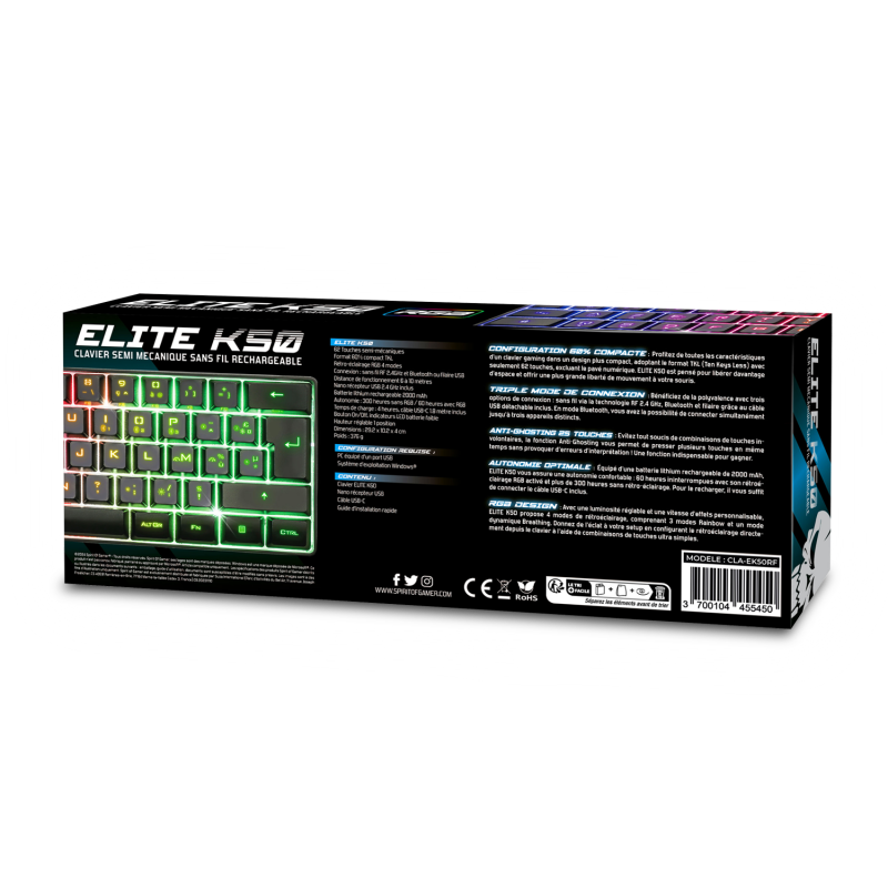 RGB DESIGN: With adjustable brightness and a customizable effect speed, ELITE K50 offers 4 backlight modes, including 3 Rainbow modes and a dynamic Breathing mode. Give shine to your setup by setting backlight directly from the keyboard using ultra simple key combinations.