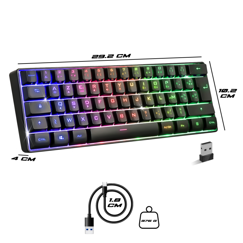 OPTIMAL AUTONOMY: Equipped with a rechargeable lithium battery of 2000 mAh, ELITE K50 ensures a comfortable range: 60 hours uninterrupted with its RGB backlight activated and more than 300 hours without backlighting. To recharge it, just connect the included USB-C cable.