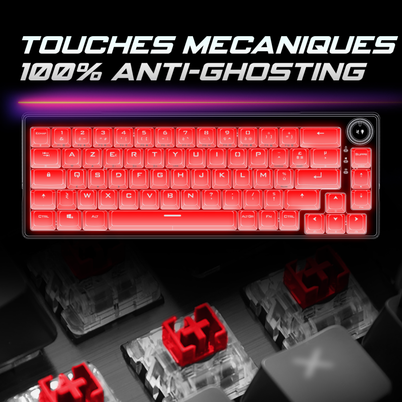 Equipped ultra-reactive red switches mechanical keys and functionality Anti-Ghosting complete, the keyboard ensures optimal performance in the game. In addition, download the dedicated software to customize your game settings: macros, profiles, and backlight RGB according to your preferences.
