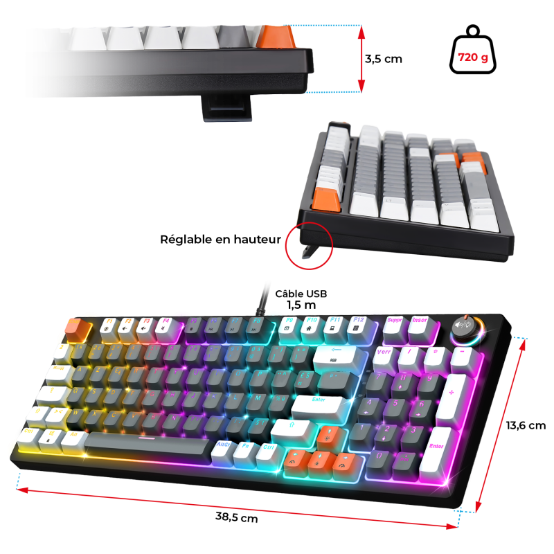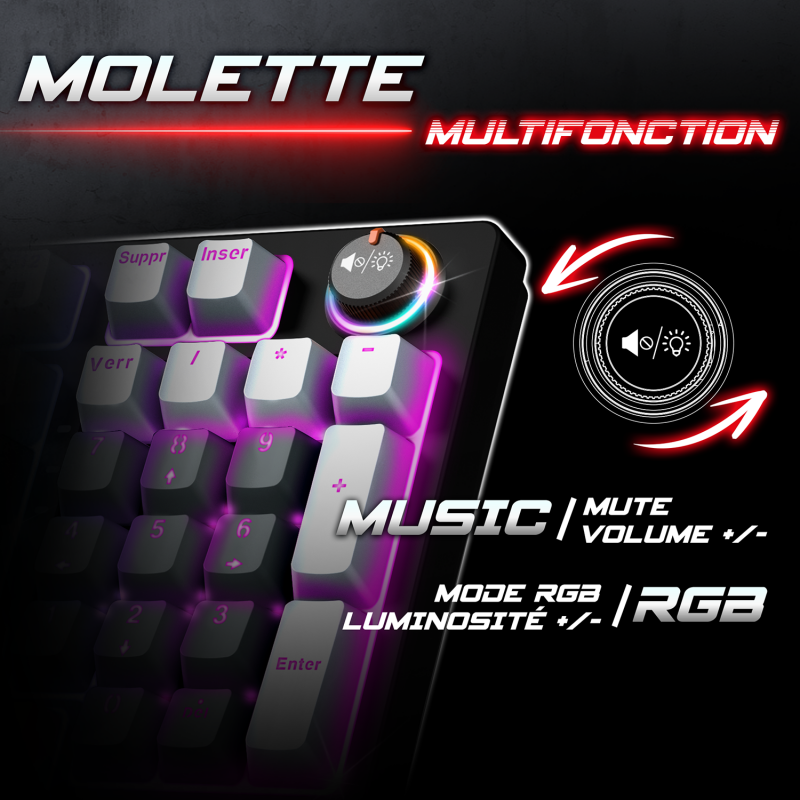 The multifunction wheel integrated allows you to control both sound volume and RGB settings. Easily adjust the volume, activate the mute function, or change the backlight mode, while having quick access to the settings for optimal fluidity during your parts.
