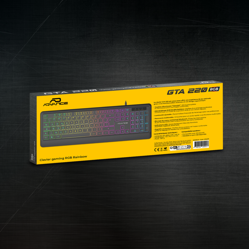 Compatible with Windows® and requiring only a free USB port, GTA 220 integrates perfectly into your setup. Whether you are a casual gamer or a fierce competitor, this keyboard will be your best ally to dominate your games.