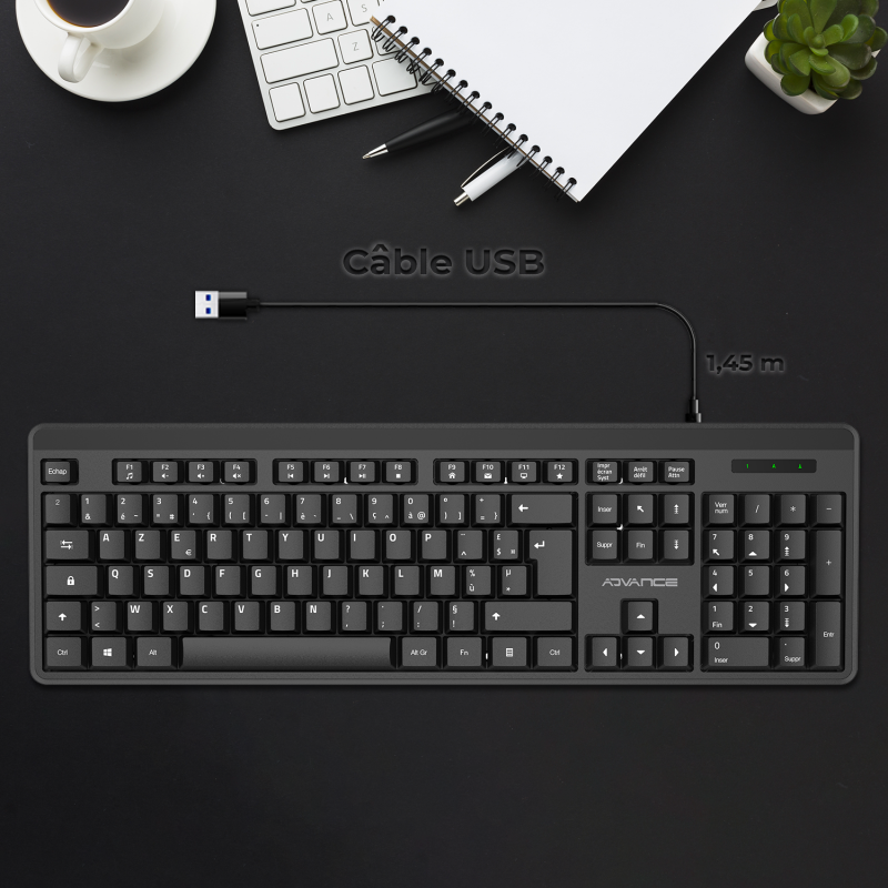 Compatible with Windows®, this keyboard only requires a USB port to operate. Its ergonomic and versatile design makes it an essential ally to optimize your comfort and productivity on a daily basis.