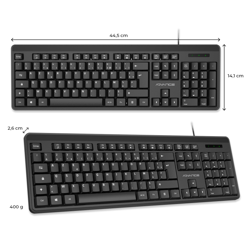 With its compact dimensions of 44.5 x 14.1 x 2.6 cm and its weight of 400 g, EzyType fits perfectly into any workspace. Its 1.45 meter USB cable offers a flexible and simple installation.