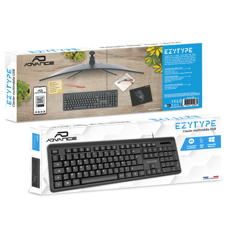 EzyType is a USB multimedia keyboard designed to offer a smooth and convenient experience. With its 105 Azerty keys, it guarantees comfortable and responsive typing, ideal for professional or personal use.