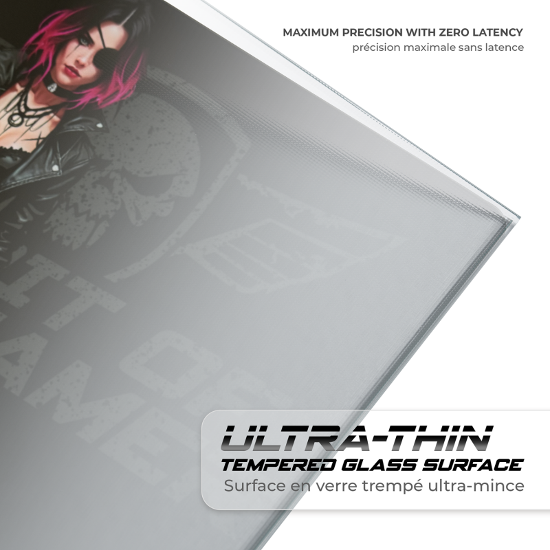 Ultra-smooth glide and surgical control : Its micro-engraved tempered glass surface (2 µm) offers a perfectly smooth glide for quick movements, while maintaining extreme stability for aiming with millimetric precision.