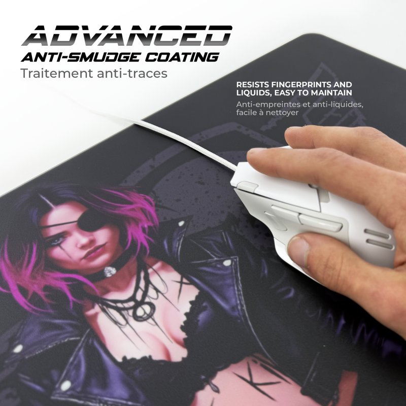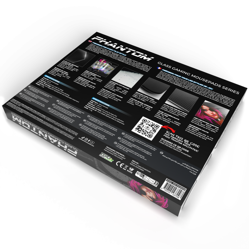 A mat as beautiful as it is performant : Its high-definition print enhanced by the transparency of the glass offers a unique visual rendering: ultra-sharp details, striking depth, and a design that enhances your gaming setup. And to go even further, 5 exclusive wallpapers are included and available for download to perfectly harmonize your desktop with the PHANTOM aesthetic.