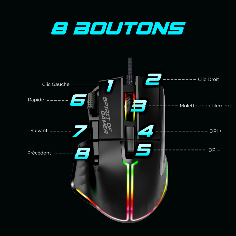 Advanced mouse control: The pack mouse offers 8 programmable buttons, including a special RapidFire button, to chain fast actions with formidable efficiency. Thanks to its 12G acceleration and ergonomic inchrest, it is perfectly suited for intensive use, guaranteeing comfort and optimal control throughout your long game sessions.