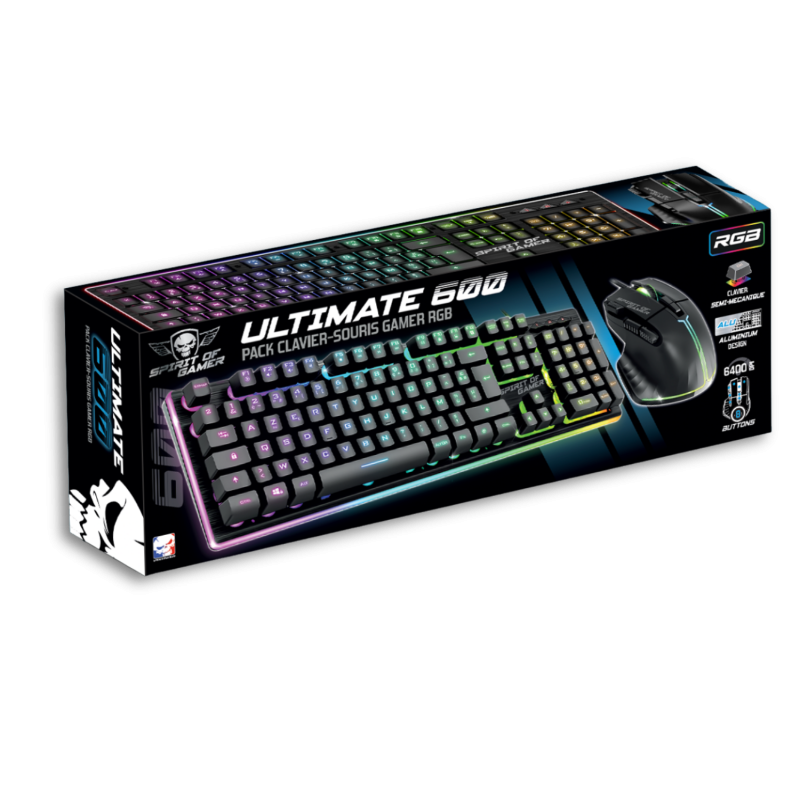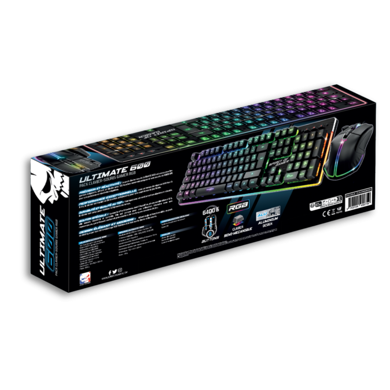 Maximum accuracy and responsiveness! The mouse keyboard pack ULTIMATE 600 is designed for the most demanding gamers, offering unparalleled performance. The keyboard has 105 semi-mechanical keys for a pleasant touch and exceptional precision, while the mouse, with a resolution of 6400 DPI, guarantees perfect responsiveness in all your actions.