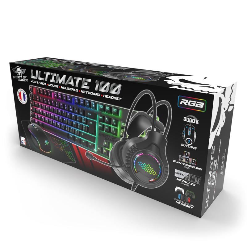 Equip yourself like a pro with the Ultimate 100 pack, a 4-in-1 set designed for demanding gamers. Keyboard, mouse, headset and mat: each element has been designed to offer comfort, precision and immersion in all your sessions. One pack, four weapons to dominate your games.