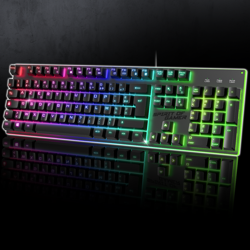 The Ultimate 100 keyboard offers an excellent balance between comfort and responsiveness with its semi-mechanical membrane keys. Its robust metallic chassis, RGB backlit keys and integrated multimedia shortcuts make it a reliable ally for gaming and office work. Play, type, always react with style.