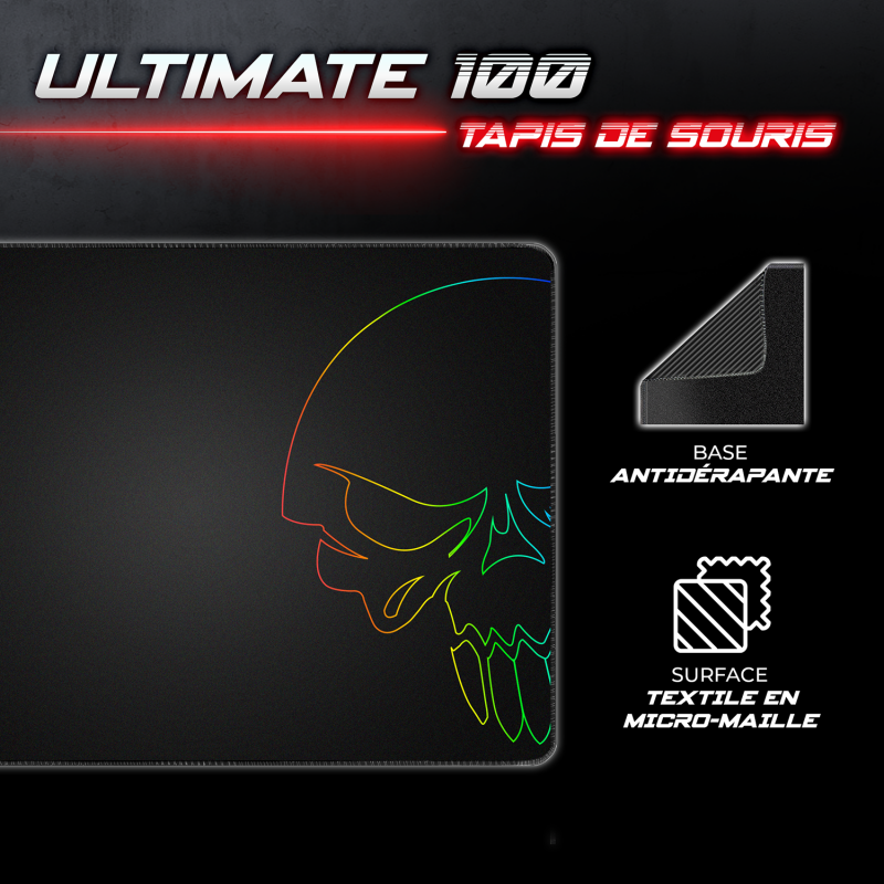 The Ultimate 100 mat finalizes your gaming space with a fabric surface optimized for precision and a non-slip base. With its dimensions of 25 x 35 cm, it provides the ideal glide for FPS as well as MOBAs. Master each movement with stability and fluidity.