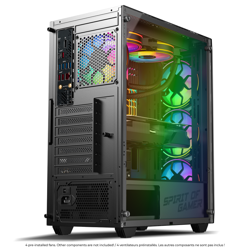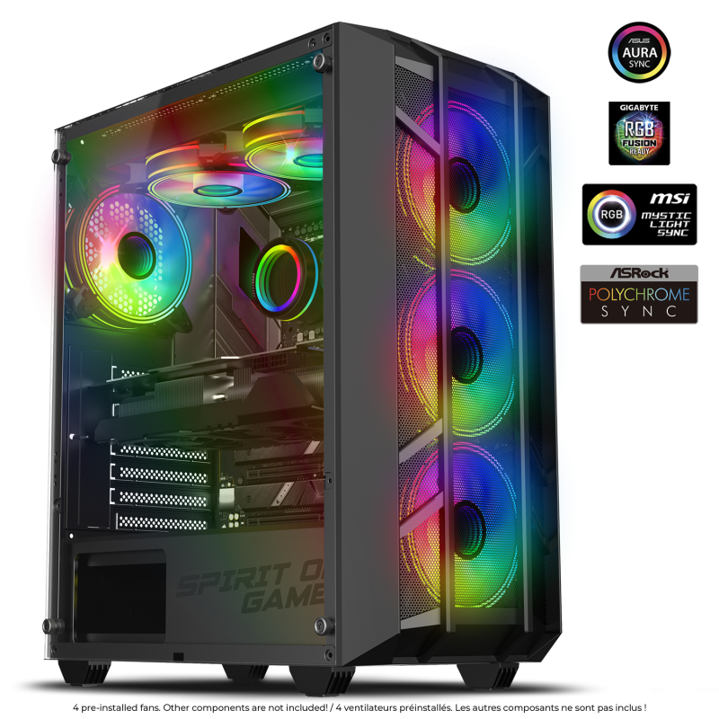 Efficient cooling with immersive RGB backlighting: Equipped with 4 pre-installed ARGB 120mm fans, REBEL NX ensures optimal airflow to keep your components cool even under full load. It can accommodate up to 6 fans and an AIO water cooling up to 360mm in the front, guaranteeing controlled temperature during your most intense gaming sessions. In addition to its 14 integrated RGB modes, the ARGB backlighting of the fans can be synchronized with compatible motherboards: ASUS Aura Sync, RGB Fusion Ready, MSI Mystic Light Sync... to create a perfectly harmonized RGB ecosystem with your entire configuration.