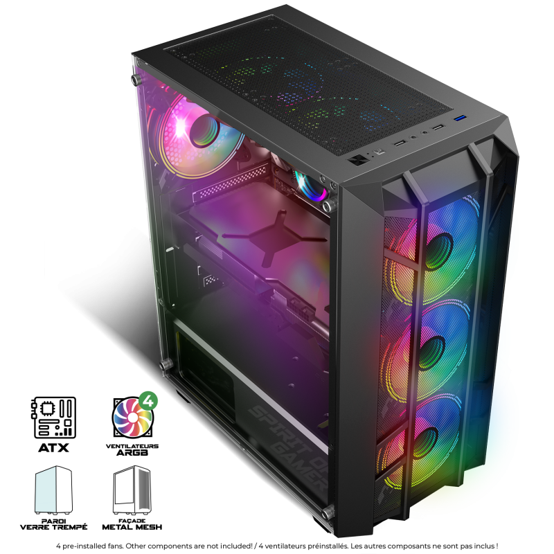 A robust and practical gamer design: Combining 0.55mm SPCC steel, Metal Mesh front and tempered glass side panel, the REBEL NX displays a resolutely gamer style and highlights your ARGB configuration. The removable dust filters and integrated cable management facilitate maintenance and ensure a clean and efficient assembly. Compact and lightweight, it combines aesthetics, performance and practicality for gamers who want to impress.