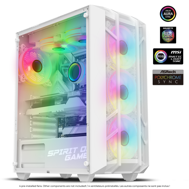 Efficient cooling with immersive RGB backlighting: Equipped with 4 pre-installed ARGB 120mm fans, REBEL NX ensures optimal airflow to keep your components cool even under full load. It can accommodate up to 6 fans and an AIO water cooling up to 360mm in the front, guaranteeing controlled temperature during your most intense gaming sessions. In addition to its 14 integrated RGB modes, the ARGB backlighting of the fans can be synchronized with compatible motherboards: ASUS Aura Sync, RGB Fusion Ready, MSI Mystic Light Sync... to create a perfectly harmonized RGB ecosystem with your entire configuration.