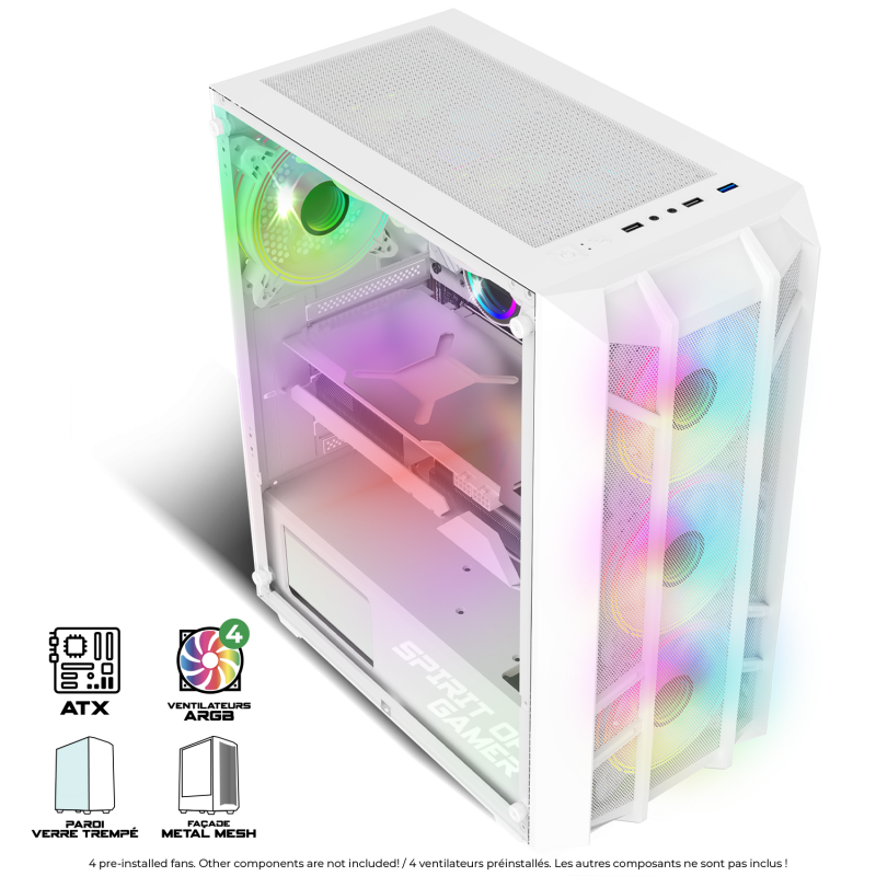 A robust and practical gamer design: Combining 0.55mm SPCC steel, Metal Mesh front and tempered glass side panel, the REBEL NX displays a resolutely gamer style and highlights your ARGB configuration. The removable dust filters and integrated cable management facilitate maintenance and ensure a clean and efficient assembly. Compact and lightweight, it combines aesthetics, performance and practicality for gamers who want to impress.