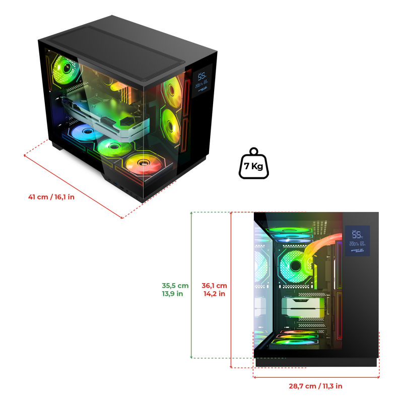 Real-time monitoring with integrated LCD screen: VIPER CRX includes a front LCD screen that displays essential system information in real time. Using the Spirit of Gamer application, you can view the processor temperature, fan speed, and other key data, to keep track of the status of your machine while enhancing your configuration.