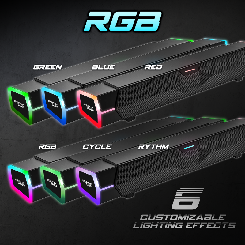 Take control with the multifunction wheel, your onboard command center. Adjust the volume, change mode, activate RGB lighting and choose from 6 light effects to enhance your setup. Display your colors and make your space vibrate with each game.